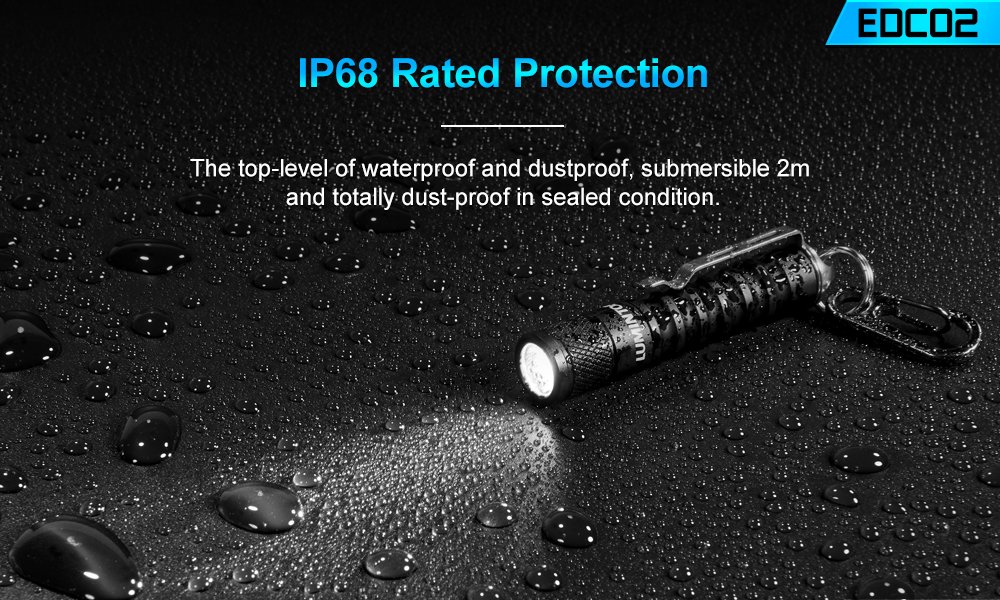 EDC02 is a compact and magnetic EDC flashlight. Adopts an Osram LED, three outputs with a max of 120 lumens on Hign. Runs on one AAA battery, easy to get. Detachable keychain and stainless steel clip, magnetic tail cap enable hands-free in various tasks. IPX-8 waterproof protection, EDC02 is a reliable partner in camping, everyday carry, and standby usages.
